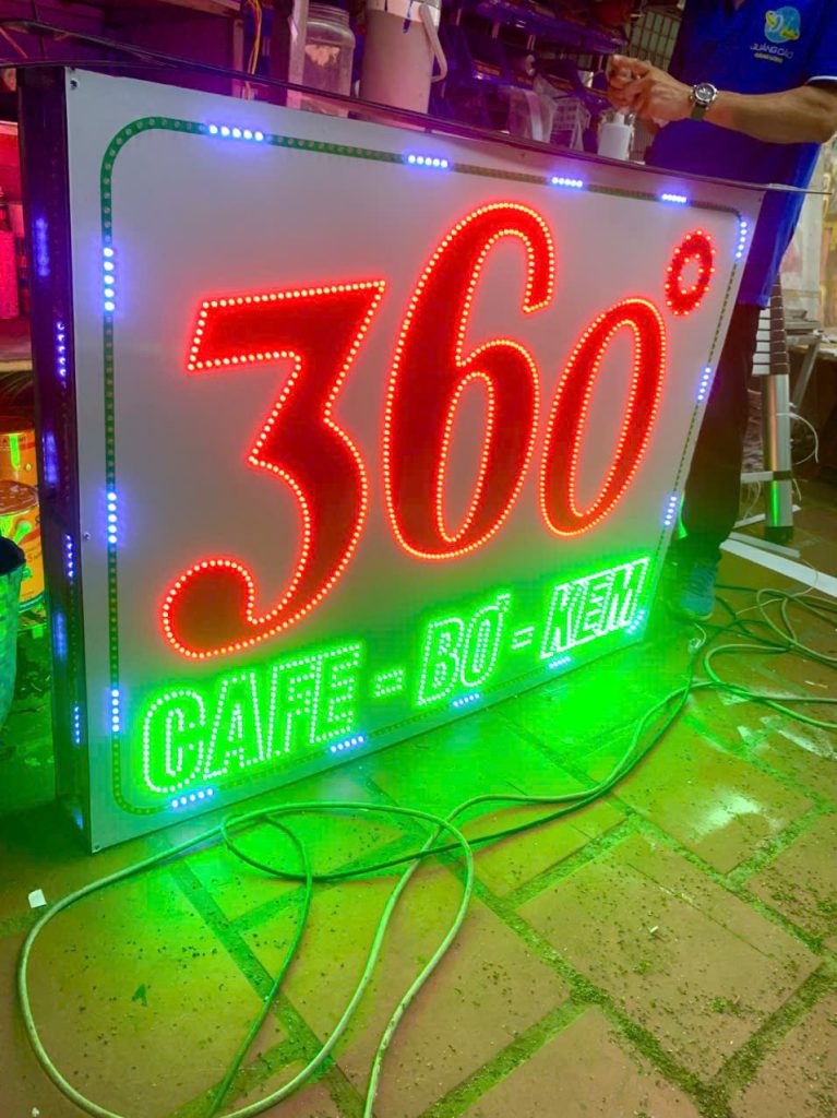 Thu hút mạnh ban đêm: LED sáng đều, hiệu ứng viền chạy hoặc nhấp nháy nhẹ làm biển “sống” hơn bảng tĩnh.