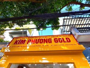Bảng hiệu tiệm vàng luôn cần sự chỉn chu, độ sắc nét và cảm giác sang trọng ngay từ mặt tiền. Dự án bảng hiệu Kim Phượng Gold là mẫu thiết kế – thi công trọn gói được chúng tôi thực hiện theo đúng tiêu chuẩn của ngành vàng bạc – đá quý. Tổng thể bảng hiệu được bố trí theo dạng khung cổng 3 trụ, giúp cửa hàng nổi bật, tạo ấn tượng mạnh khi khách nhìn từ xa.